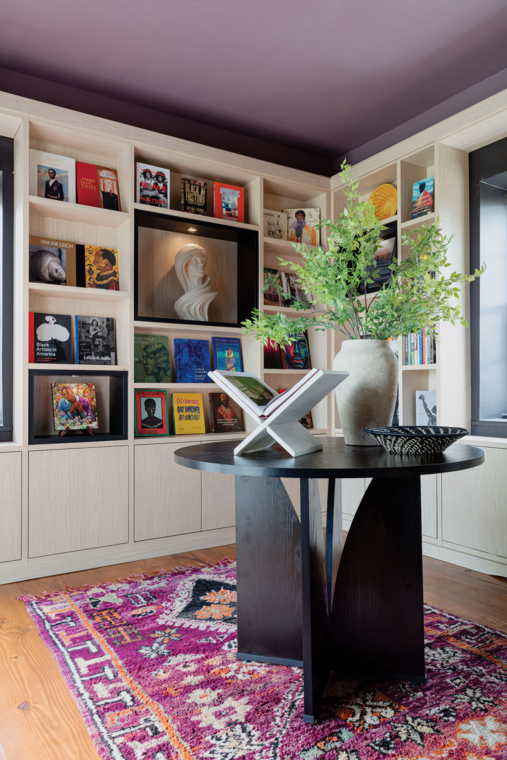 In the To Be Free Library, Ellenville’s Aphrochic Home explores the intersection of design and cultural narrative. Their serene, book-lined space—with shelving by California Closets, who it turns out make much more than closets—houses a collection entirely by Black authors, from W.E.B. Du Bois to Jesmyn Ward. The result is part reading room, part gallery, part quiet assertion of presence.