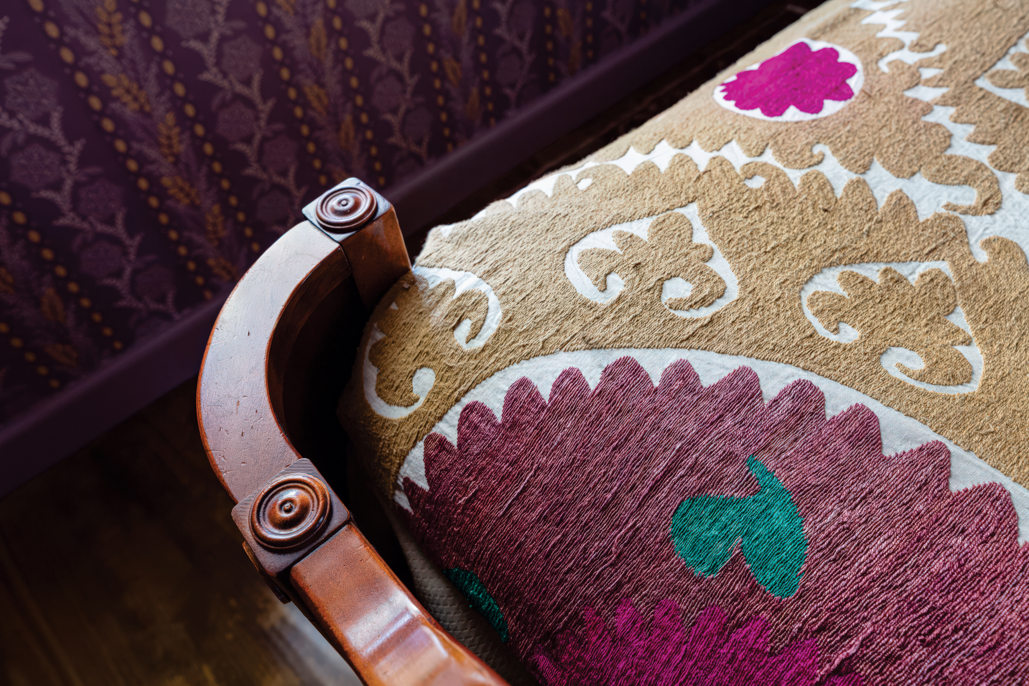 The handpainted wallpaper in the Groove Room is made by Porter Teleo. Photo by Phil Mansfield