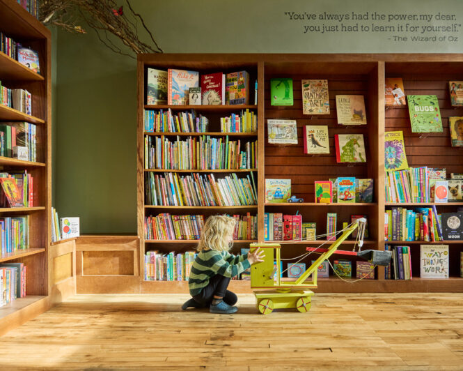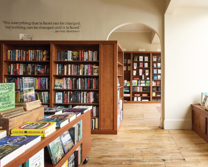 Leeds and Glagola took two adjoining storefronts and combined them into an 1,800-square-foot bookstore with distinct areas within a small footprint.