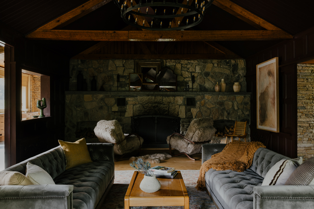 Inside the structures, the renovation began with the philosophy of subtraction. “What’s great about sustainable design is that it doesn’t have to be heavy-handed,” explains Walsh. “The main lodge and house, as well as the smaller cabins, were built over a span between the 1910s and 1930s and were a bit out of date but had beautiful original detailing.”