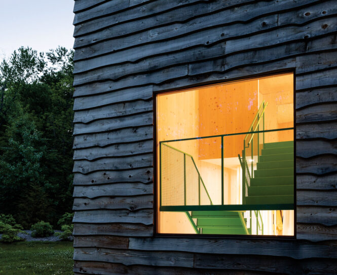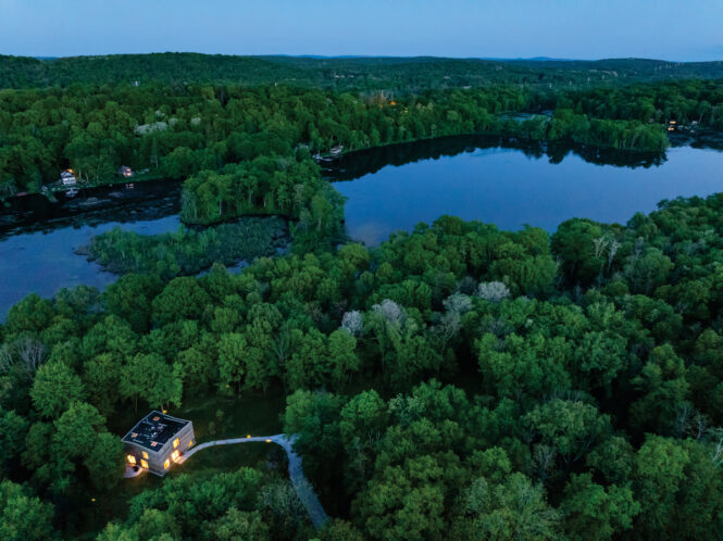 Sometimes architecture starts with a material. Sometimes it starts with a landscape. And sometimes it starts with a paddle stroke. Architects Mimi Hoang and Eric Bunge have been navigating the same Dutchess County lake for over a decade: They’ve paddled along the same wooded shoreline, dived into the same deep water, and watched the same woods unfurl and shed through the seasons. The husband-and-wife cofounders of nArchitects regularly take on site-responsive projects across the globe. But no matter how far-flung the architectural commission, they always found their way back to the same fresh-water Hudson Valley microcosm to swim, kayak, or just relax with their children. “There’s just something magical about this lake,” explains Hoang. “It’s quiet, it’s peaceful—and it always felt like home long before it actually was.”