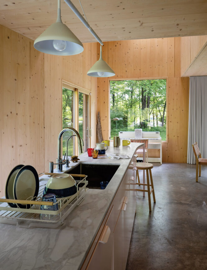 The couple did briefly consider buying property after starting their Brooklyn-based firm in 1999. “We looked at several lots in the area but at the time concluded that we couldn’t afford it,” explains Bunge. After friends bought a shareable second home outside of Rhinebeck, they gave up their search to focus on growing both their firm and their family, content to visit the borrowed lake home regularly. “Since 2013 we estimate we’ve spent at least four months total in that house,” says Bunge. “We’d hike, explore the water, or visit our favorite restaurants and dream of eventually having a place of our own.”