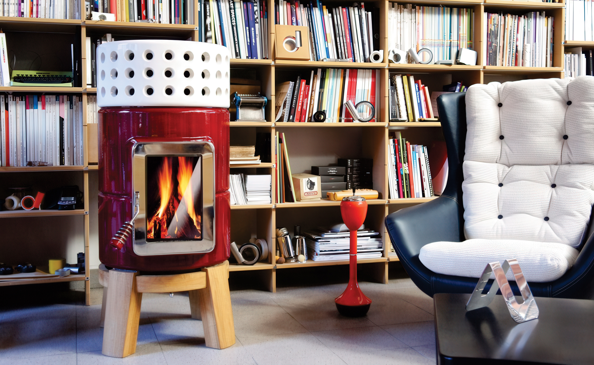 One product, the Shaker, brings a modern-yet-minimalist twist to the traditional wood stove design. A boxy stove on tall legs, the Shaker (which comes in two sizes and starts at $8,150) was crafted with the influence of Shaker furniture in mind, and one version has an attached bench for sitting beside the fire. In past years, the stove has won both the prestigious Red Dot Design award and a Chicago Museum of Architecture and Design Good Design award.